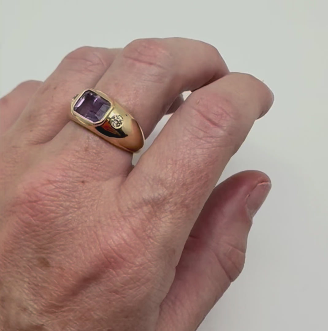 Anillo en Oro amarillo 14K con 0.20 CT diamantes y 2.10 CT Amatista