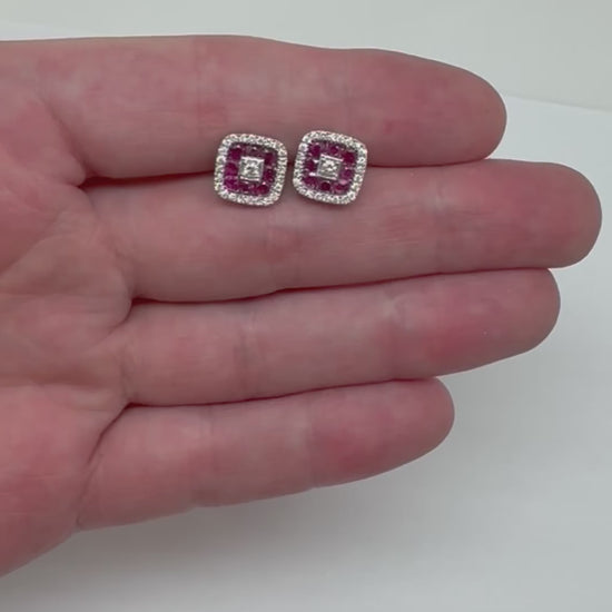 Aretes en Oro blanco 14K con 0.20 QTES diamantes y 0.62 CT rubí.
