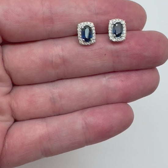 Aretes en Oro blanco 14K con 0.25 CT diamantes y 0.80 CT zafiro.