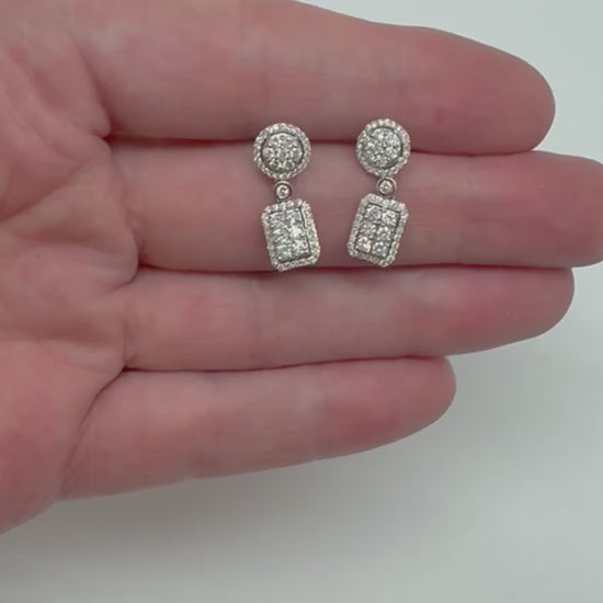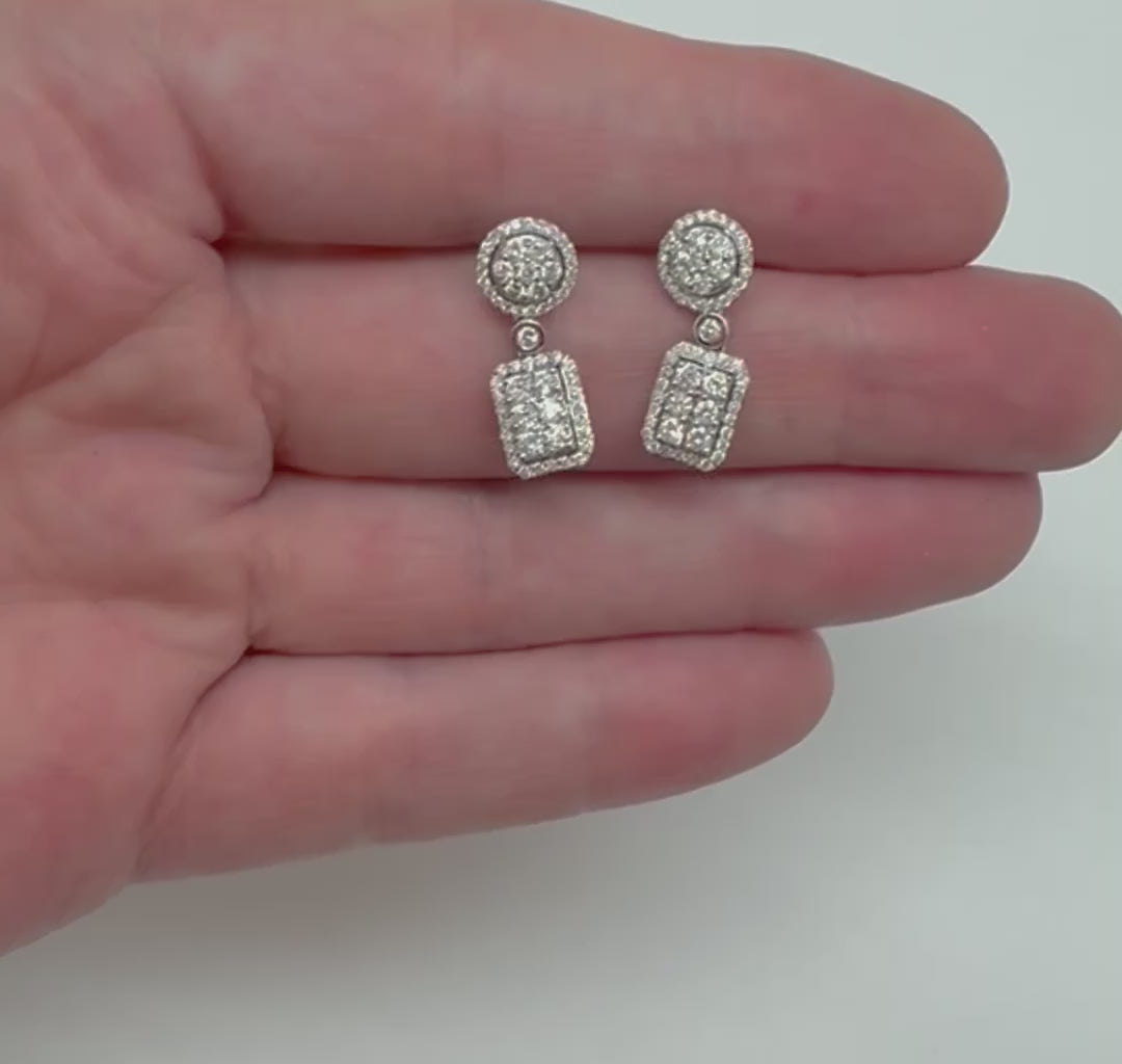 Aretes largos en oro blanco 18K con 0.85 QTES diamantes.