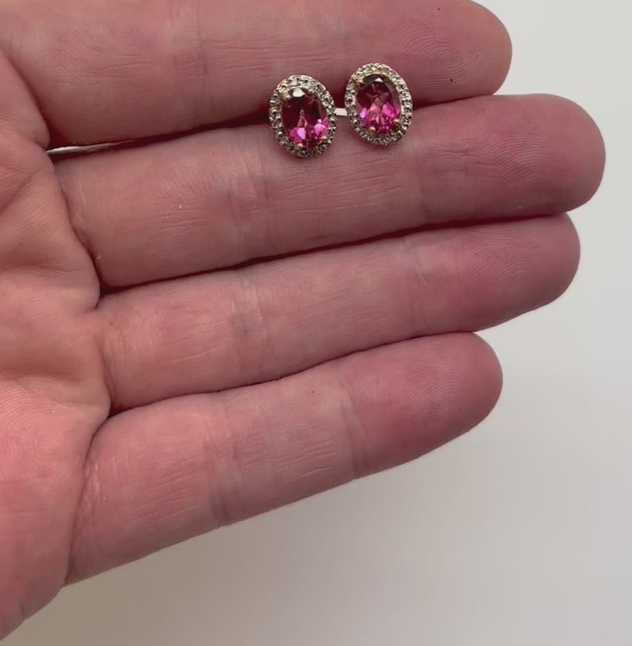 Aretes en oro blanco 14K con 1.04 CT turmalina rosa y 0.12 CT diamante