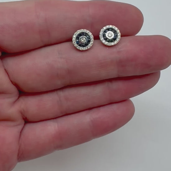 Aretes en Oro blanco 14K con 0.25 QTES diamantes y 0.25 CT zafiro