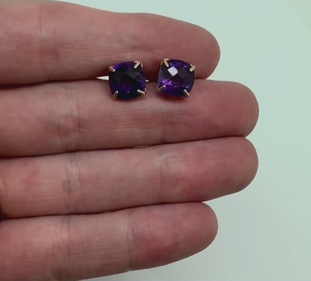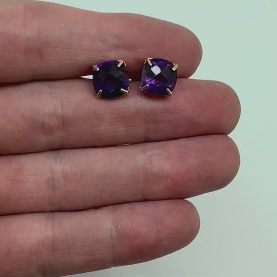 Aretes oro amarillo 14K con amatista