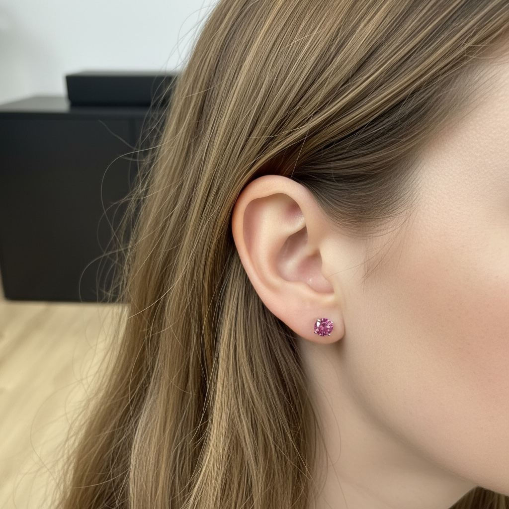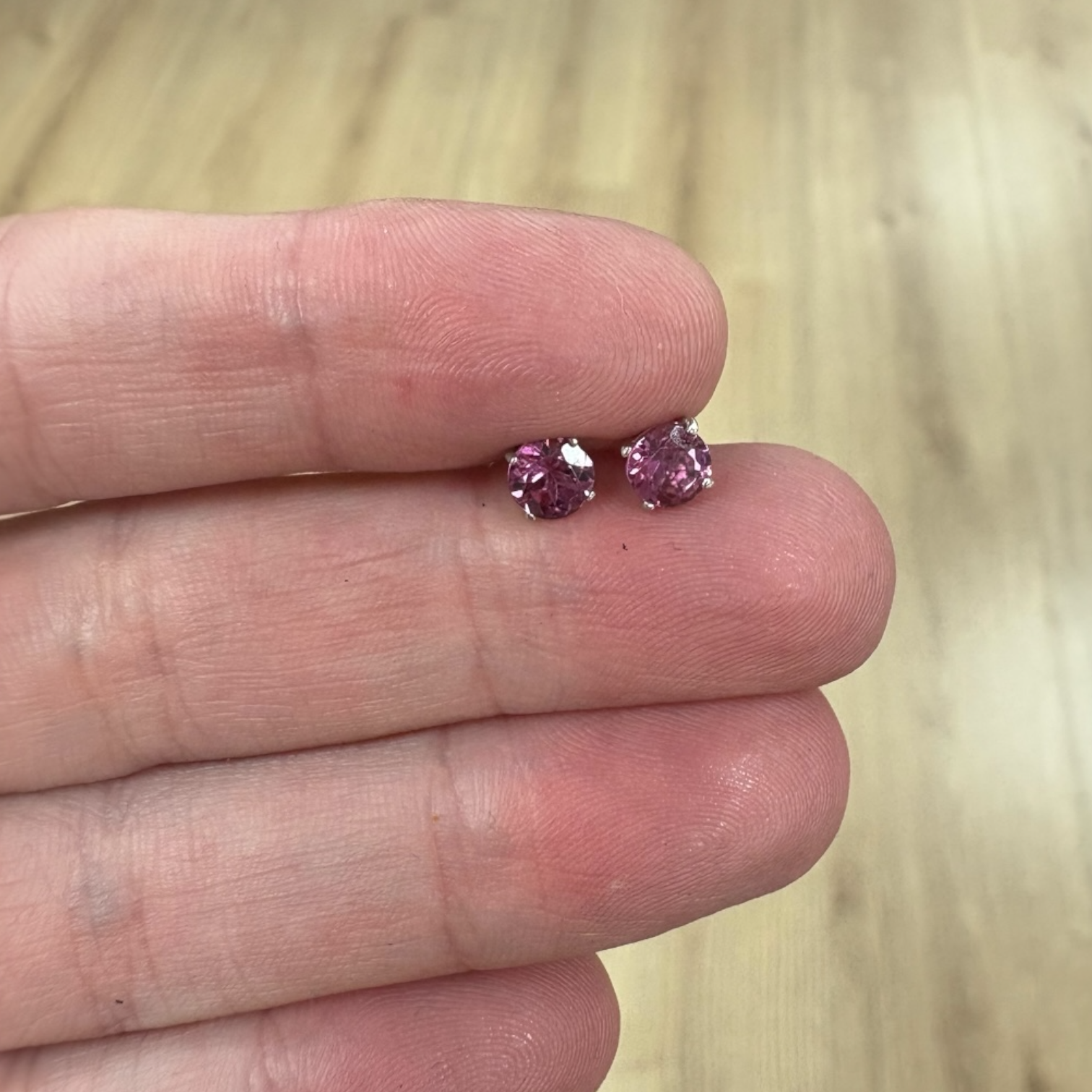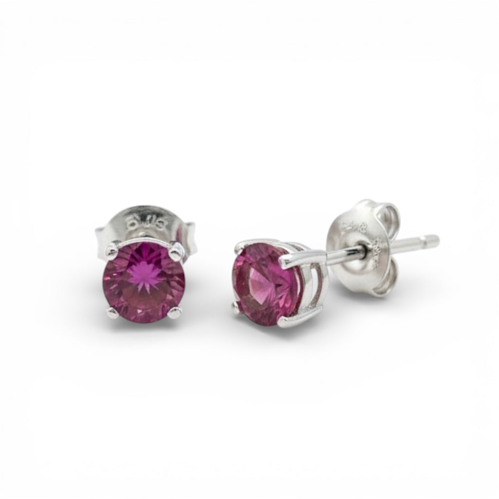 Aretes oro blanco 14K con rodolita
