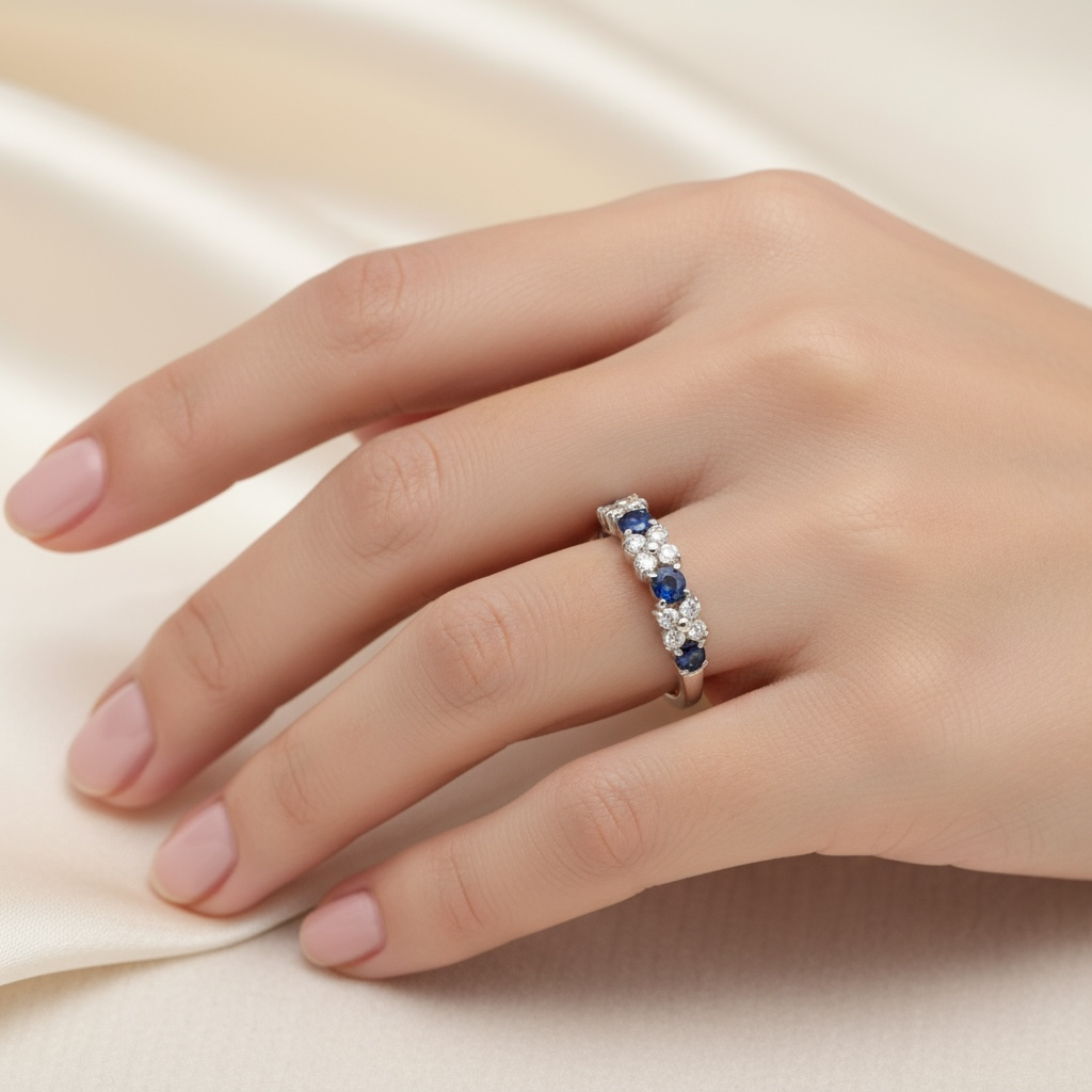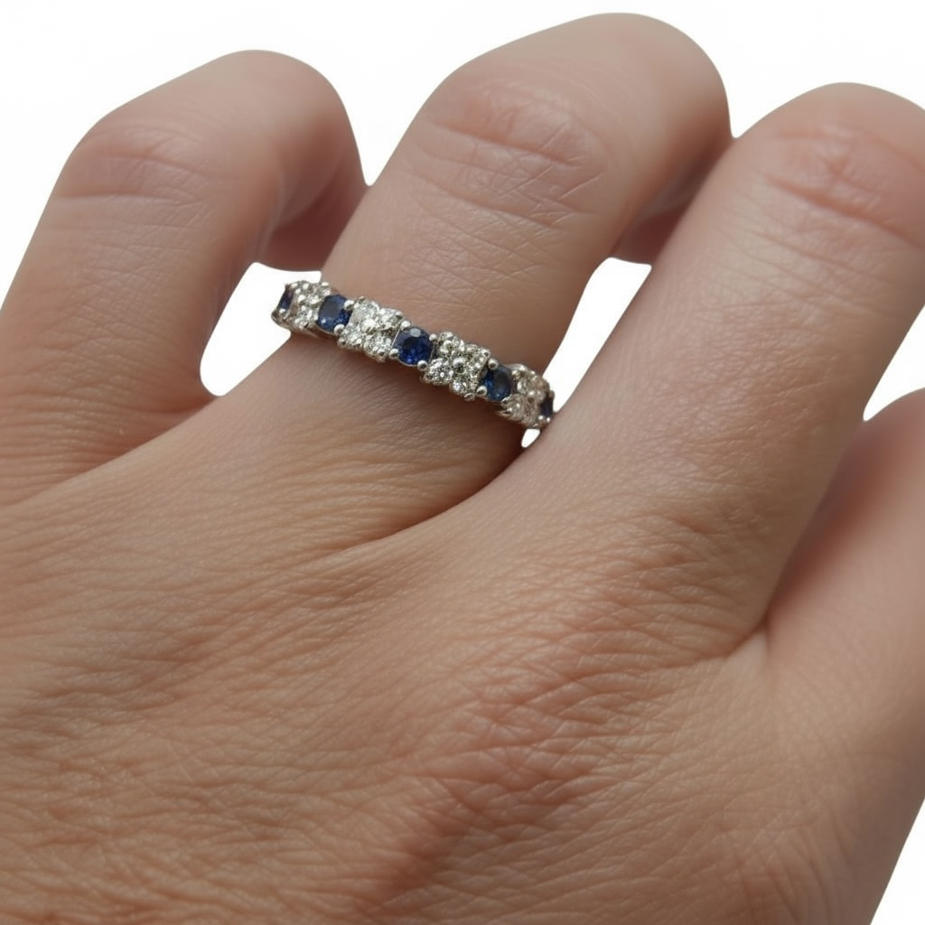 Anillo en oro blanco 14K con 0.40 QTES de zafiro y 0.30 QTES diamante.