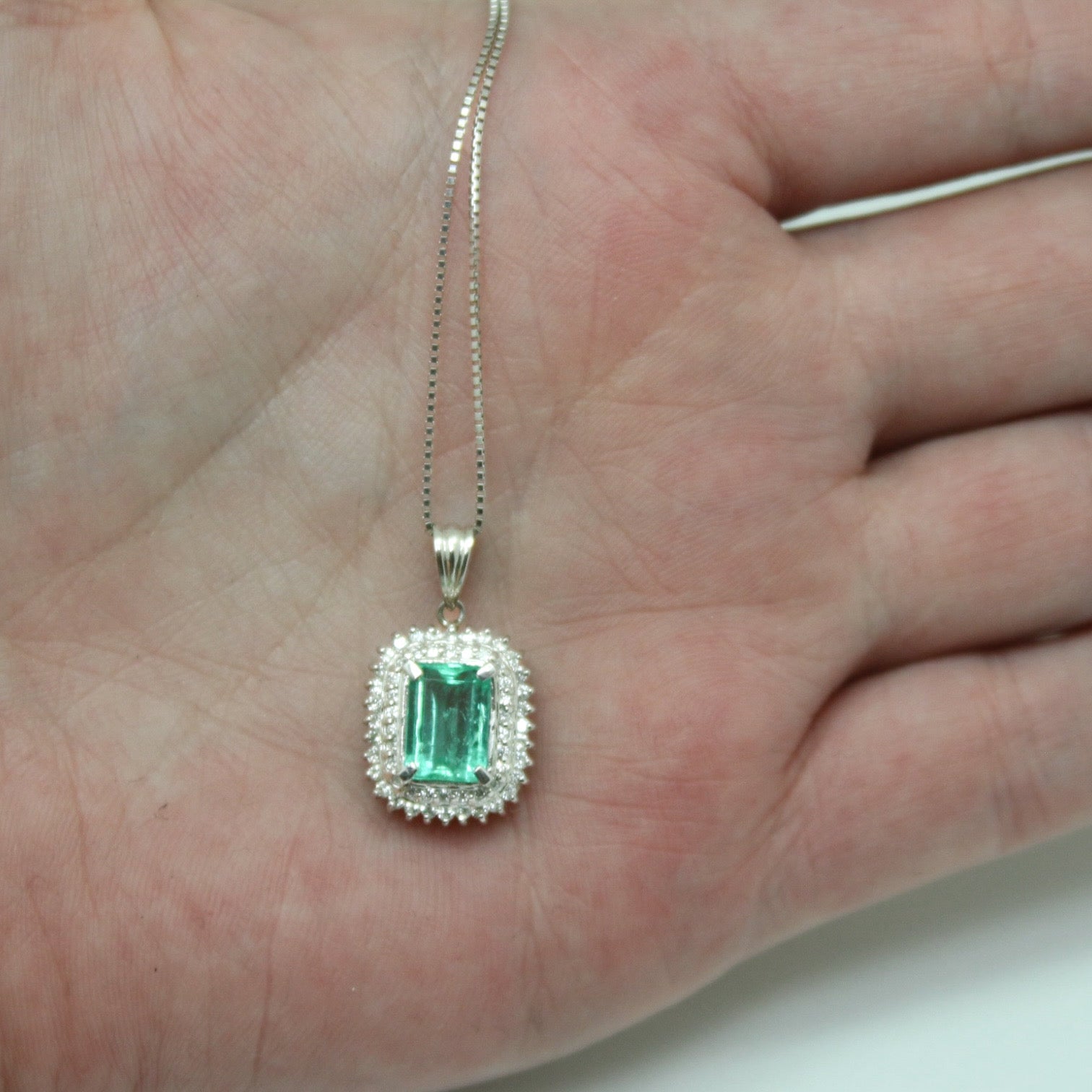 Collar en platino 14K con 0.40 CT diamantes y 1.80 CT esmeralda.