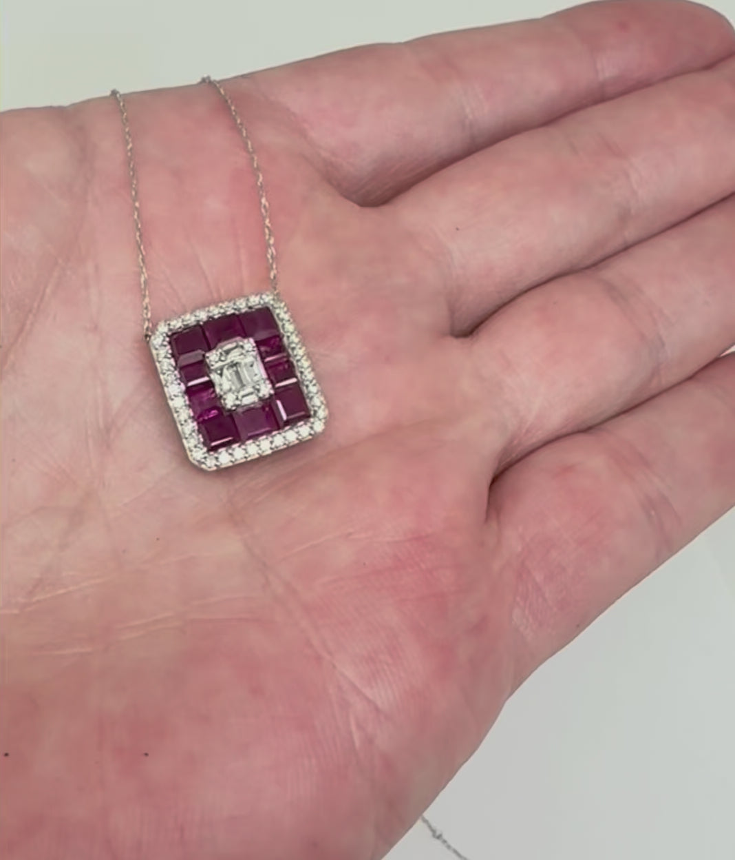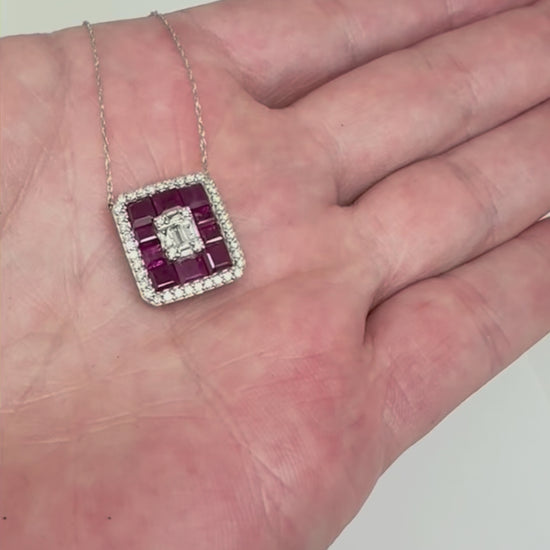 Collar en oro blanco 14K con 0.60 CT Rubi y 0.20 CT diamante