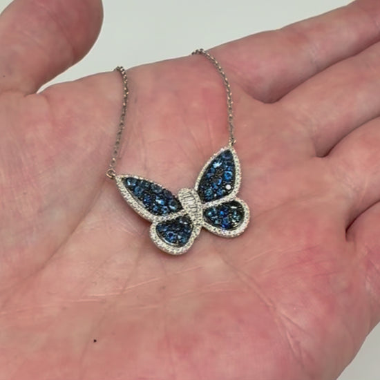 Collar en oro blanco 18K con 1.30 CT de diamantes y 9.50 CT Zafiro.