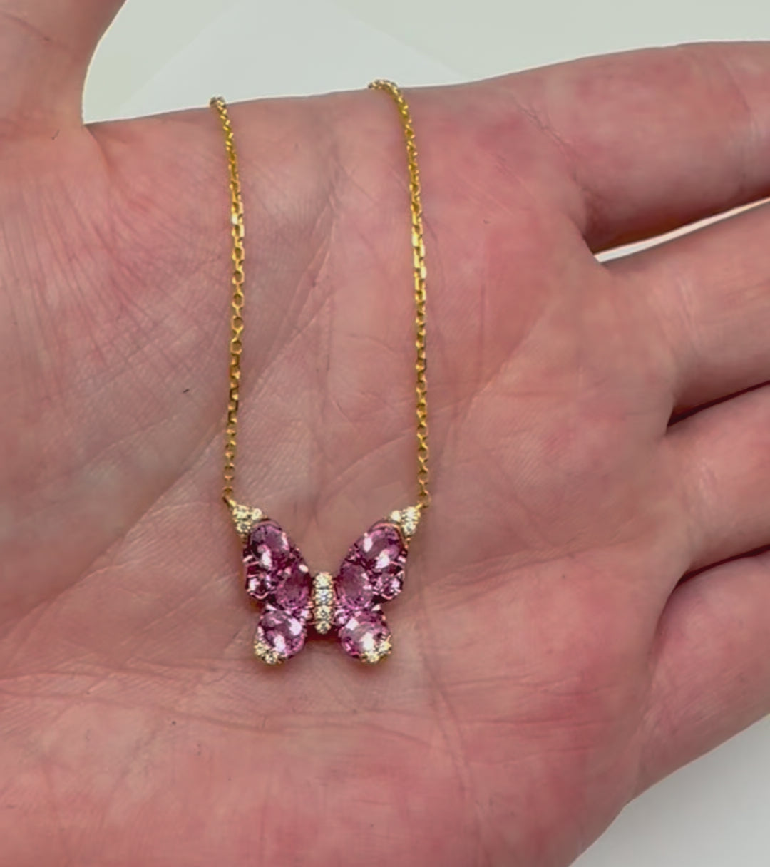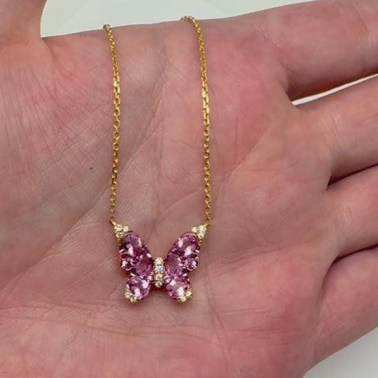 Collar en oro amarillo 14K con 1.35 CT zafiro rosa y 0.10 CT diamante.