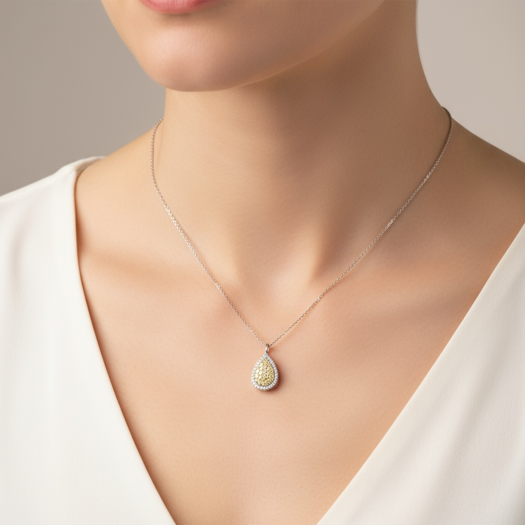 Collar en oro blanco 14K con 0.50 CT diamantes amarillos y 0.30 CT diamantes