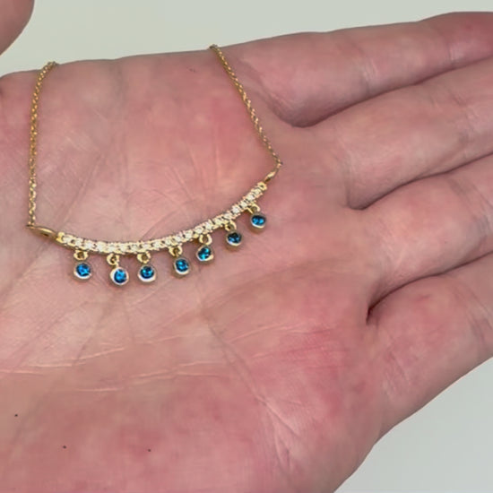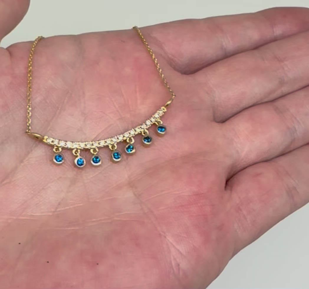 Collar en oro amarillo 14K con 0.20 CT diamante y zafiro.