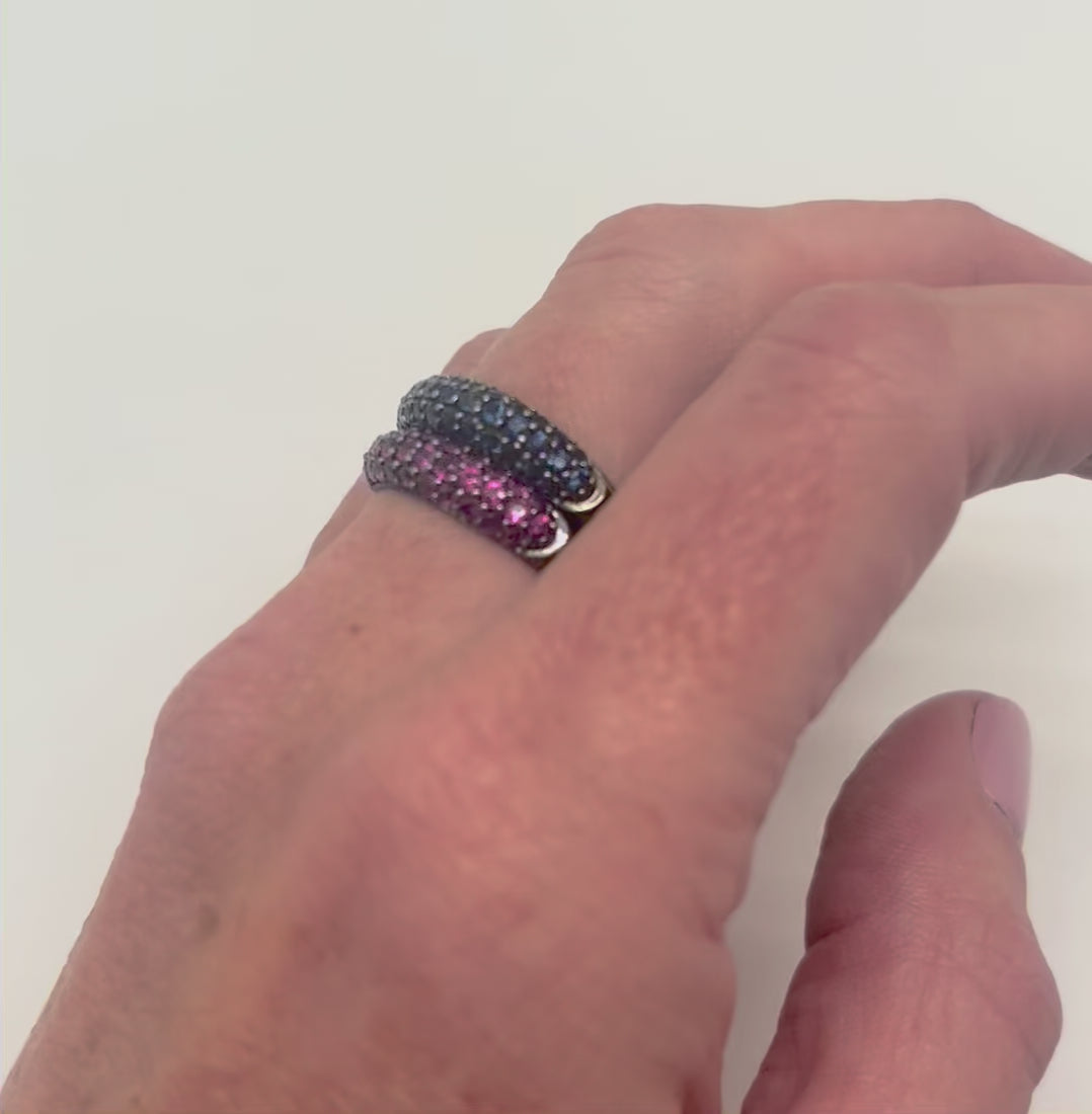 Anillo en oro pavonado negro 14K con 0.39 QTES zafiro rosa en pave.