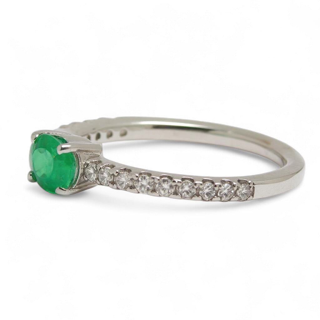 Anillo en oro blanco 14K con 0.65 QTES de esmeralda y 0.16 QTES de diamante