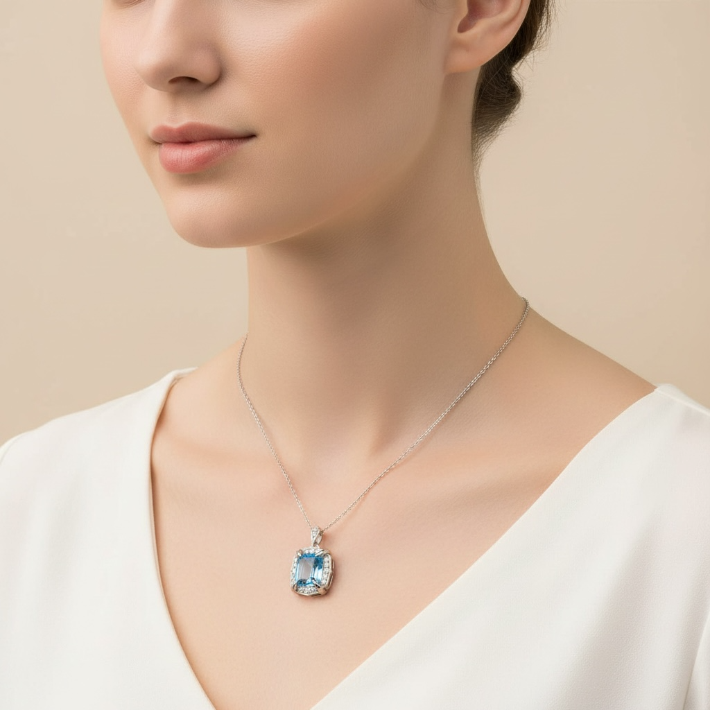 Collar en oro blanco 14K. con 5.10 CT topacio y 0.30 CT diamantes.
