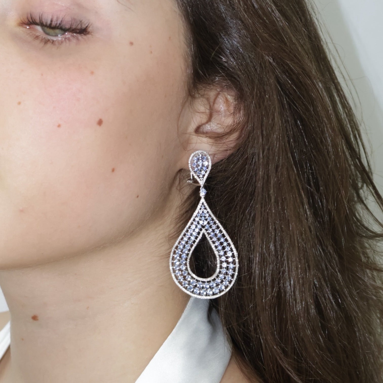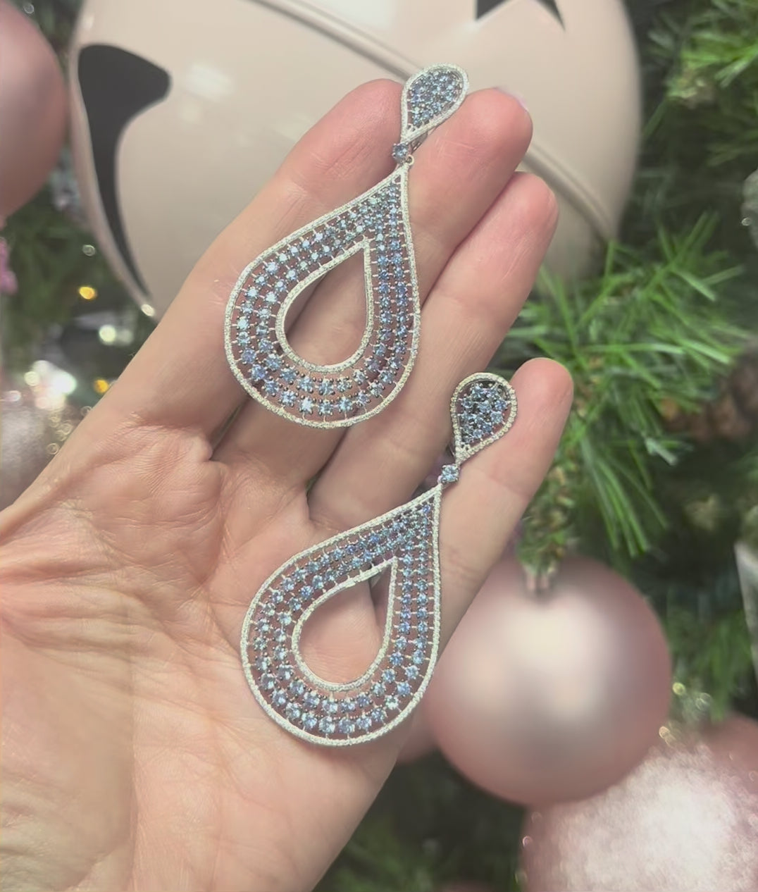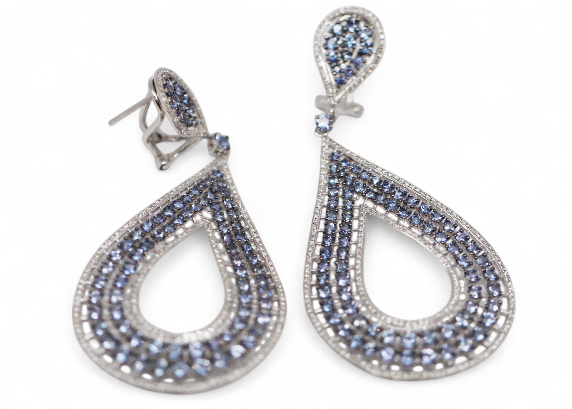 Aretes largos en oro blanco 14K con 7.06QTES de Zafiro y 0.40 QTES diamantes.