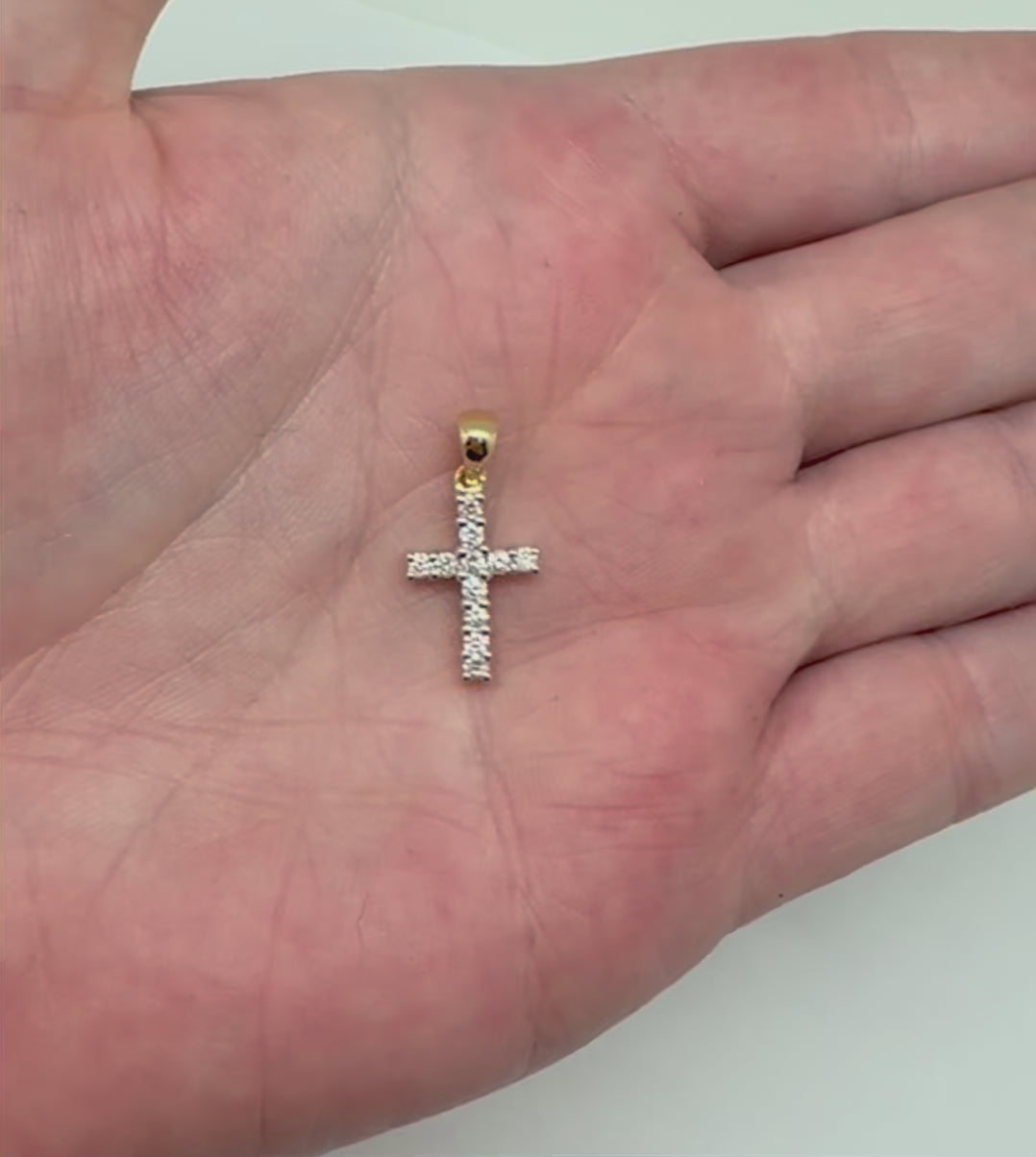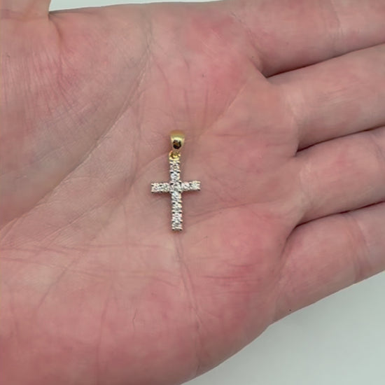 Cruz en oro amarillo 14K con 0.34 QTES de diamante
