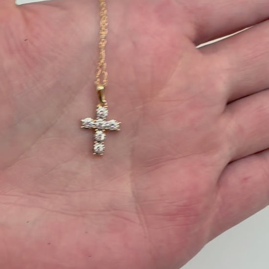 Cruz en oro amarillo 14K con 0.20 QTES de diamante