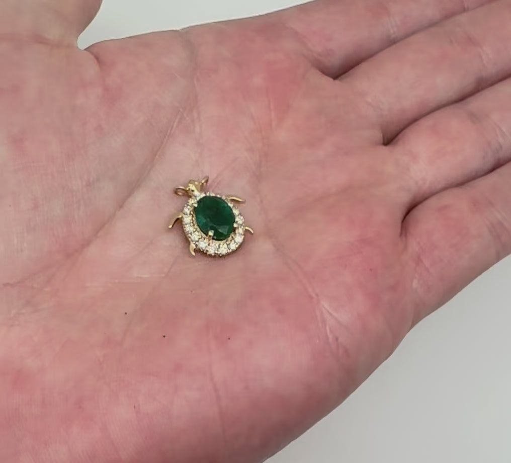 Dije en oro amarillo 14K con 1.20 CT esmeralda y 0.30 CT diamantes